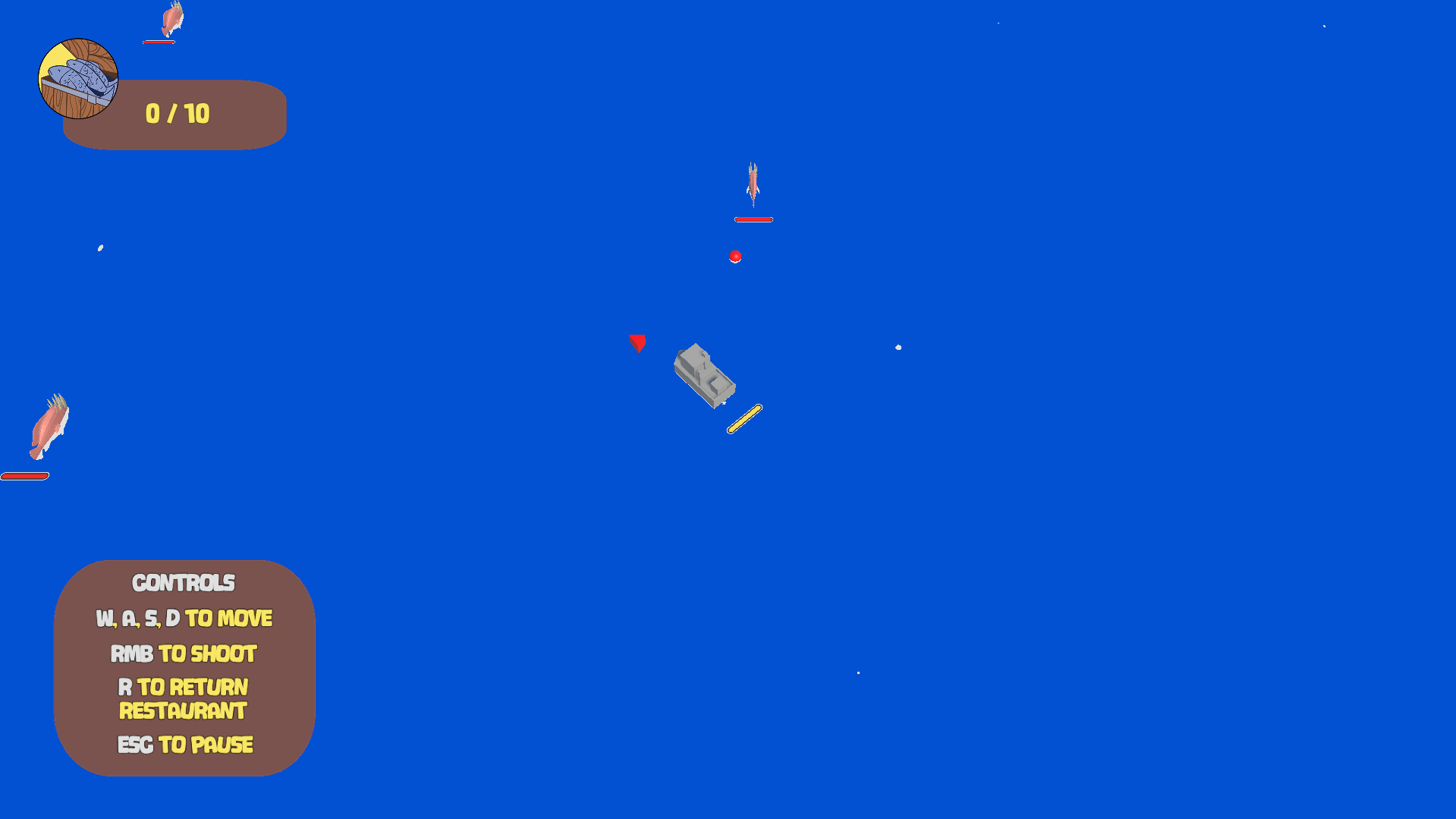 A seafood restaurant management sim with ocean boat-shooter combat exploration adventure.